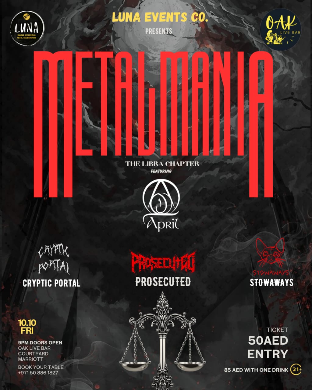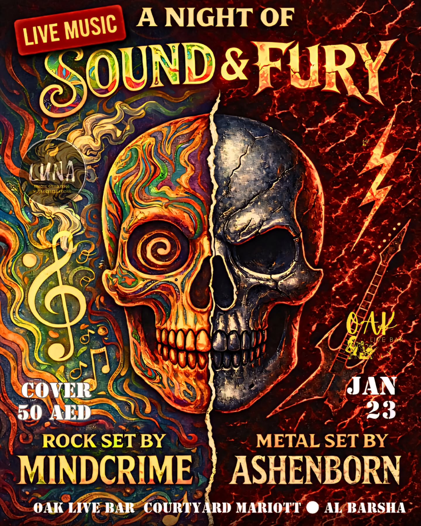 ๐ฅ THE Illuminated ๐ฟ๐ฆ โ Blazing in from South Africa, The Illuminated bring powerful version of rock and metal cover songs. ๐ฅMORTAR ๐ฆ๐ชfrom UAE- A six-piece nu metal band based in Dubai. Playing nu metal and grunge classics with high energy๐ค๐ฝHeavily influenced by bands like Deftones, Slipknot, Alice in Chains etc. ๐ฅ Dracul ๐ณ๐ต โ Dark-edged voice with his classic renditions of cover songs an artist from Nepal will mesmerise you. ๐ฅ WAYWARD SPIN ๐ฆ๐ช โ Will tear into classic 90s/2000s nu-metal and prog highlights with precision โ smashing hits of Korn, Tool, Deftones. ๐ค Hosted by DJ Wynn, spinning the heaviest and the sickest metal anthems all night. ๐ป Donโt miss the first metal blast of 2026 โ tickets are only AED 50!