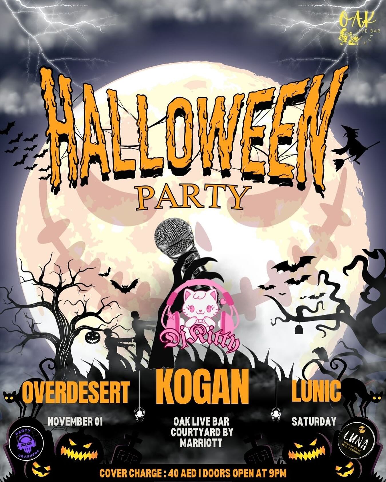 Come join this Halloween after party November 1st. Show off your costume and party with us ๐ค๐ป. Enjoy these live bands + DJ: Overdesert, Kogan, Lunic and DJ Kitty