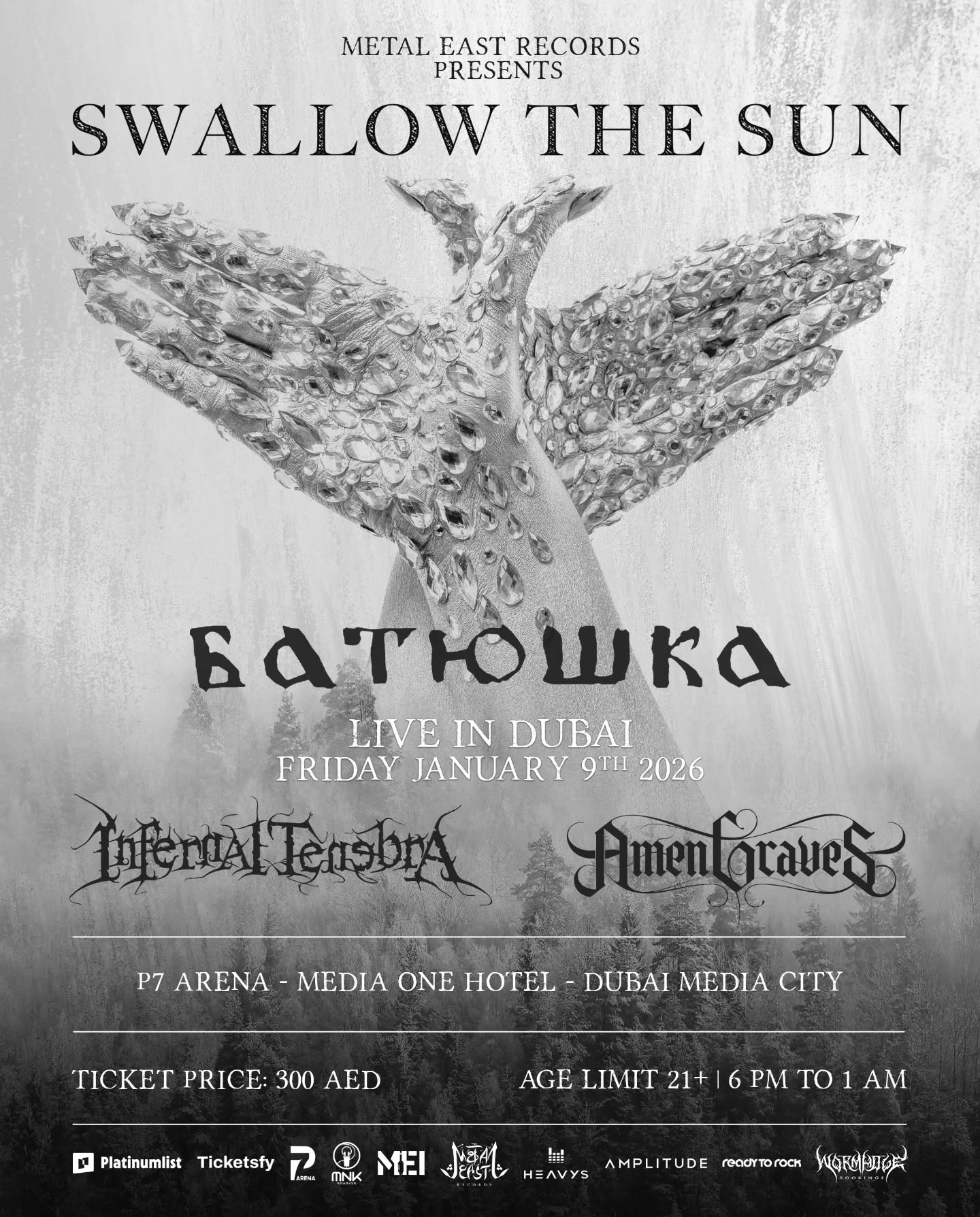 Swallow the Sun (Finland) โ melodic doom and haunting beauty. Batushka (Poland) โ the true icons of liturgical black metal. Infernal Tenebra (Croatia) โ crushing, technical, and unrelenting. Amen Graves (Dubai) โ the UAEโs own underground force.