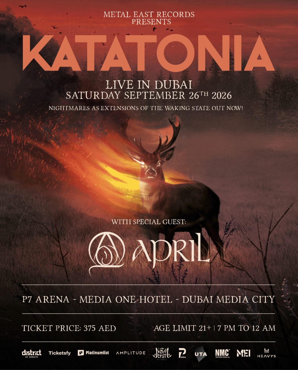 Katatonia Live in Dubai Saturday September 26th 2026 Supported by April